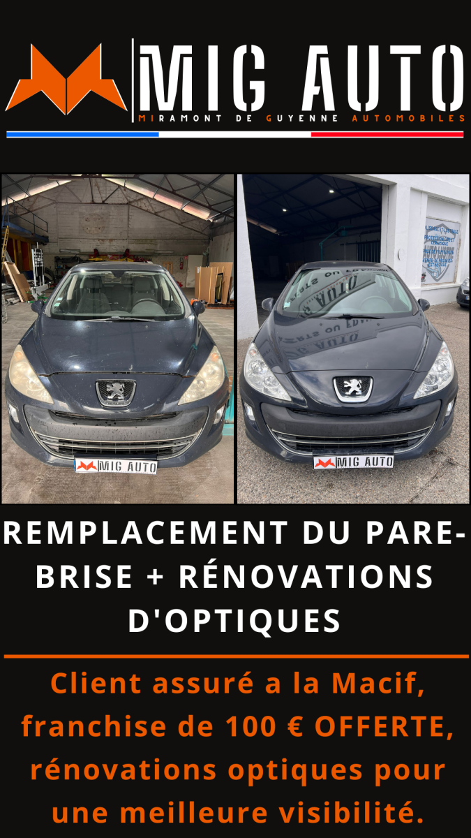 Remplacement du pare brise et renovations d'optiques pour cette Peugeot 308 @mig.auto.miramont