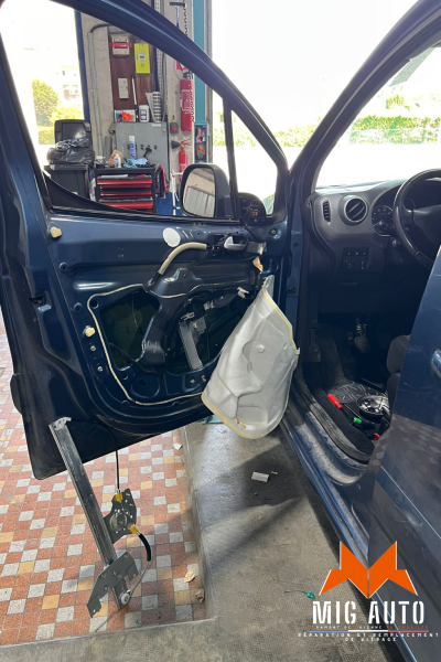 Remplacement du mecanisme de leve vitre + Remplacement du pare-brise sur le Citroen Berlingo @mig.auto.miramont